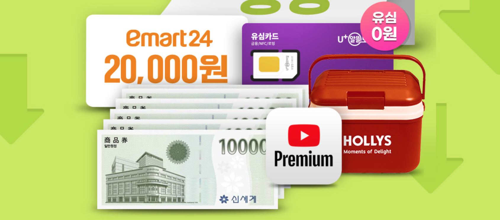 - 알뜰모바일 : 신세계 상품권 5만원 + 이마트 상품권 2만원 + 할리스 아이스박스