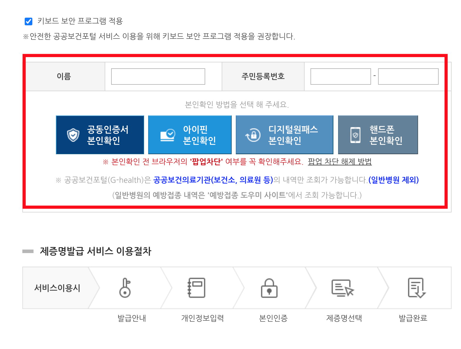 1. 건강보건포탈 접속