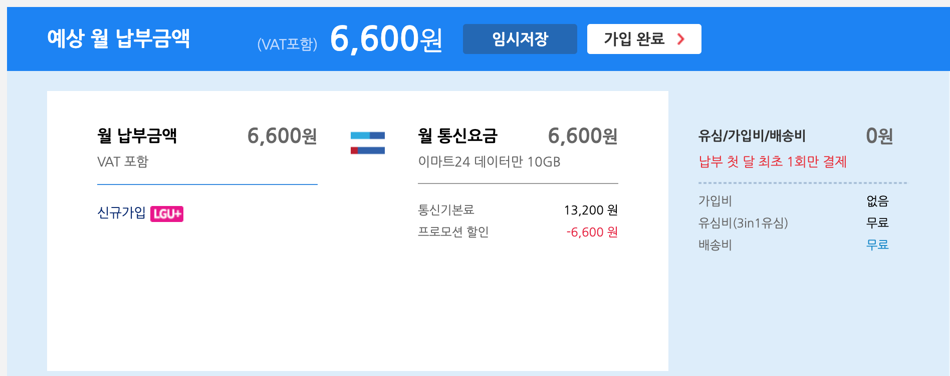 하지만 2020년 3월 현재 프로모션을 진행중이라 가입비 무료, 유심비 무료, 배송비 무료인 3무 정책을 시행하고 있습니다.