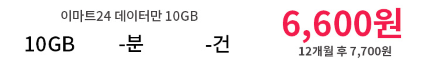 <이마트24 데이터만 10GB> 요금제는 원래 7,700원 하던 상품인데, 1,100원 더 할인하여 6,600원에 판매하고 있습니다.