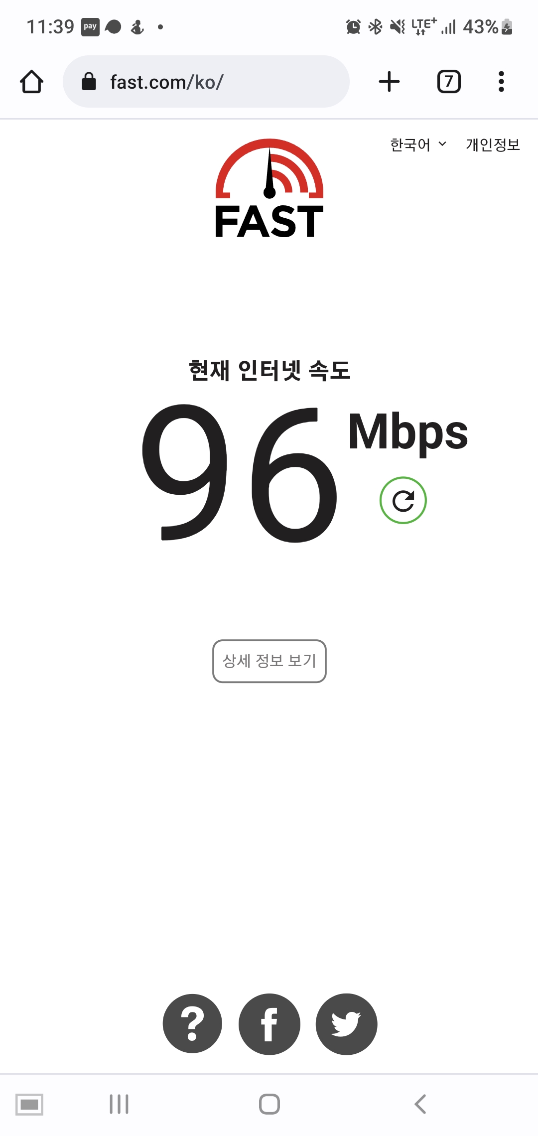 제가 속도측정 사이트 FAST.com에서 3번 테스트를 해봤습니다.