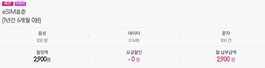 티플러스 e-SIM요금제는 2,900원부터 시작합니다.