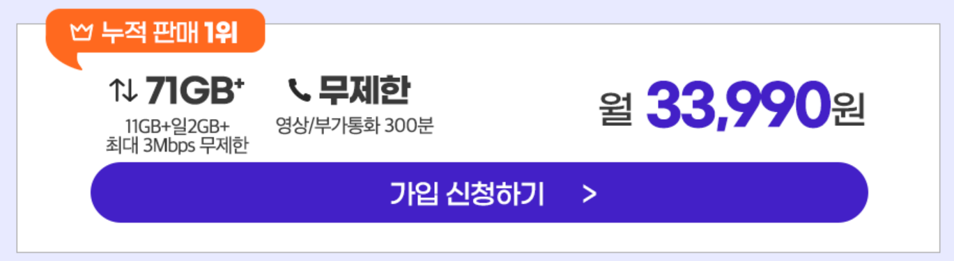 데이터량도 충분한 편이고, 다 썼을때 무제한 속도 3Mbps도 유튜브를 보기에 충분한 속도이기 때문입니다.