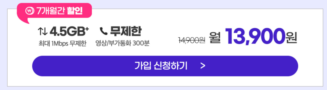 또한 이 요금제는 7개월간 할인이 적용됩니다. 7개월 후에는 정상가격인 14900원이 됩니다.