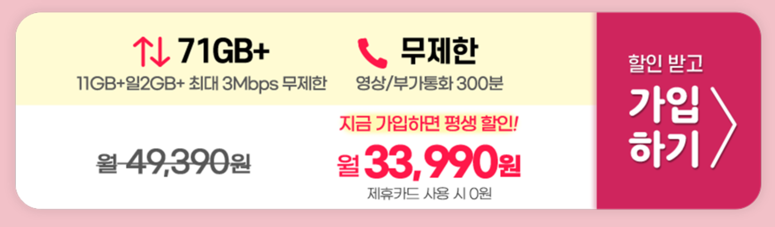 11GB 무제한 요금제 혹은 총 데이터량을 따서 71GB 요금제라고 합니다.