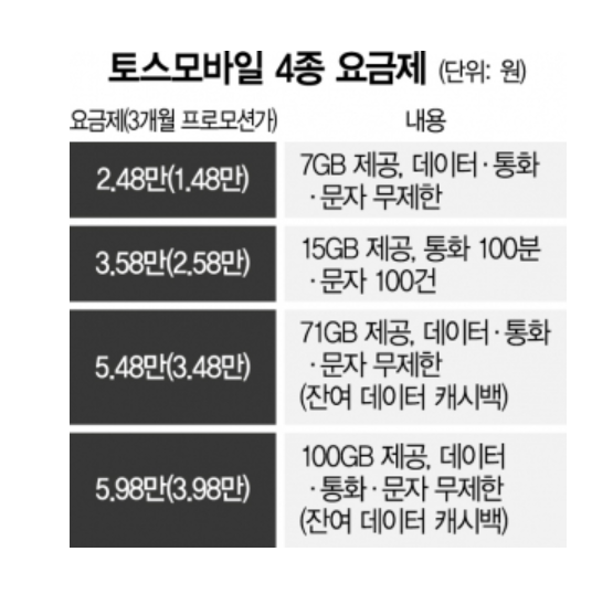토스 알뜰폰 요금제 4종을 발표했습니다.