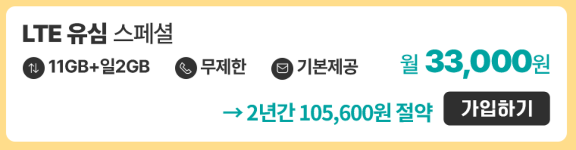 매월 기본데이터 11GB를 제공하고, 이를 다 소진하면 매일 2GB씩 주고, 이것도 다 쓰면 3Mbps 속도로 무제한 사용할 수 있는 요금제이죠,