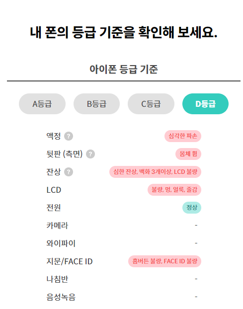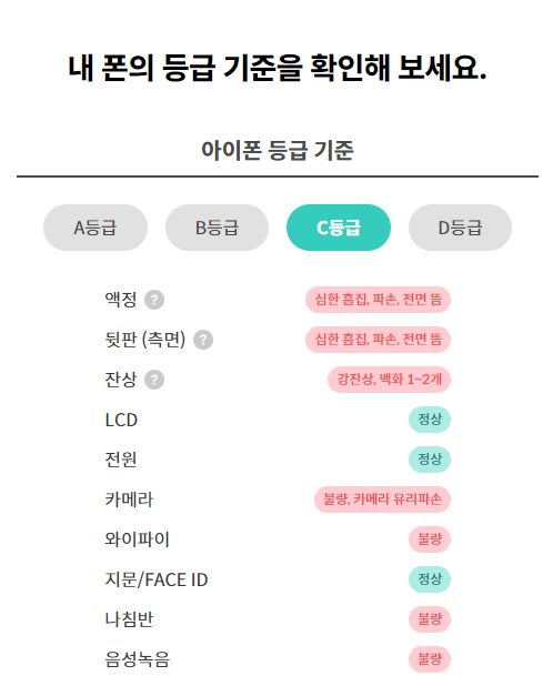 C등급, D등급은 사실상 부품용 폰이라고 봐도 될 것 같습니다.