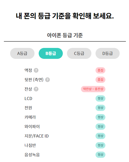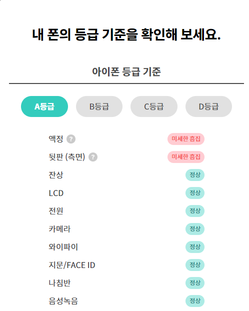 2) 민팃 아이폰 등급차이(A등급~D등급)