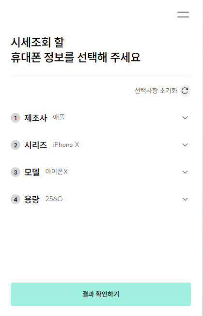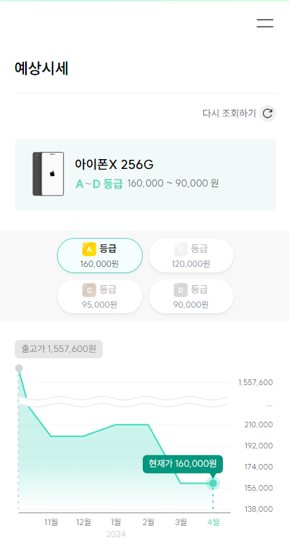 제 아이폰X 256G 모델이 민팃 중고시세는 최대 16만원이에요.