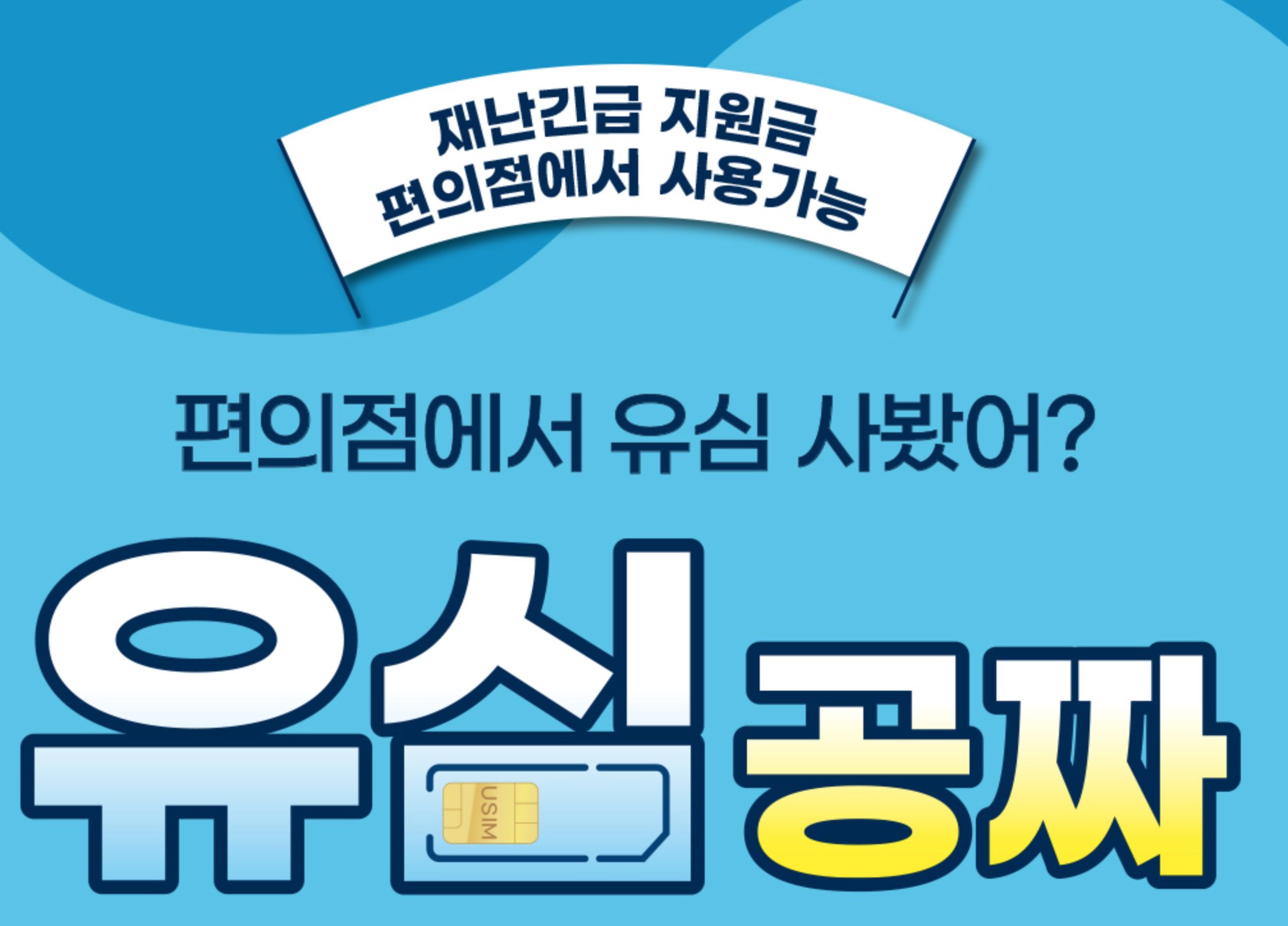 또 한가지 팁을 드리자면 유심카드는 편의점에서 구매하는 경우기 때문에 재난지원금을 사용할 수 있습니다.