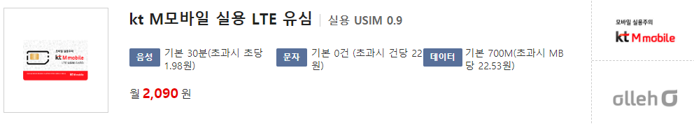 1) 엠모바일 실용유심 0.9