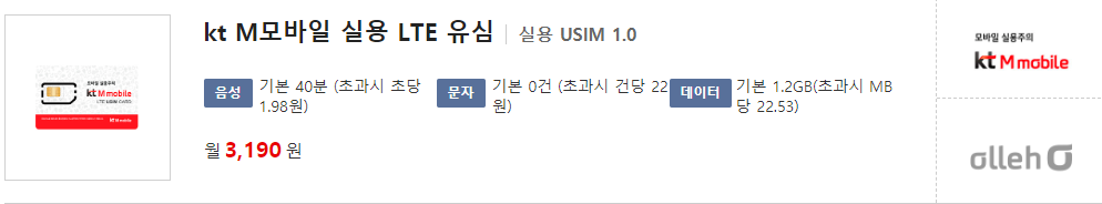 2) 엠모바일 실용유심 1.0