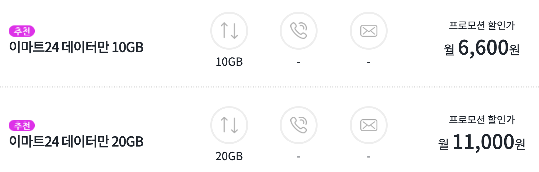 그런데 유플러스망과 제휴하면서 이마트24 요금제를 출시하였습니다.