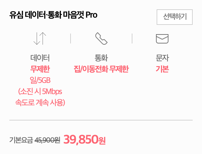물론 <유심 데이터 통화 마음것>처럼 데이터와 통화 무제한 요금제도 있지만,