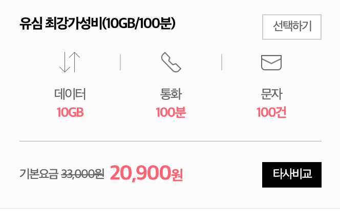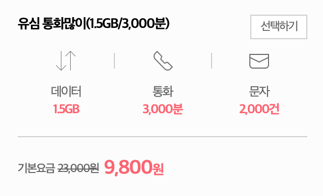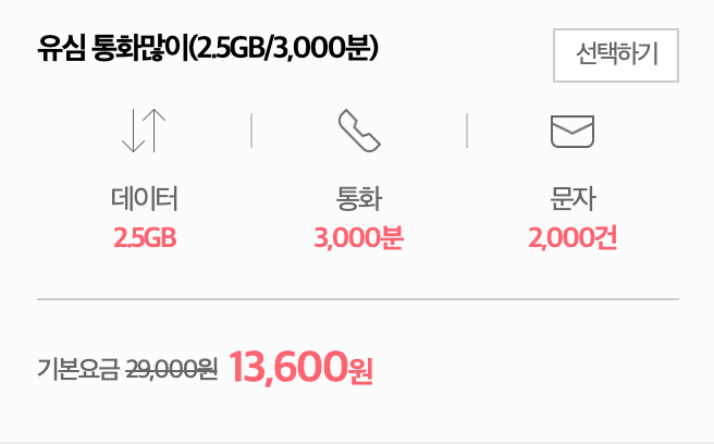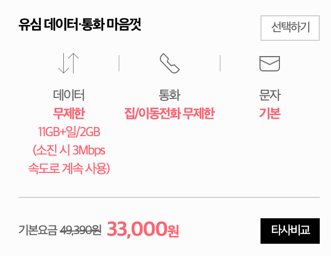 데이터 사용량은 적으나 통화량이 많은 분들은 이 요금제가 매력적일 것입니다.
